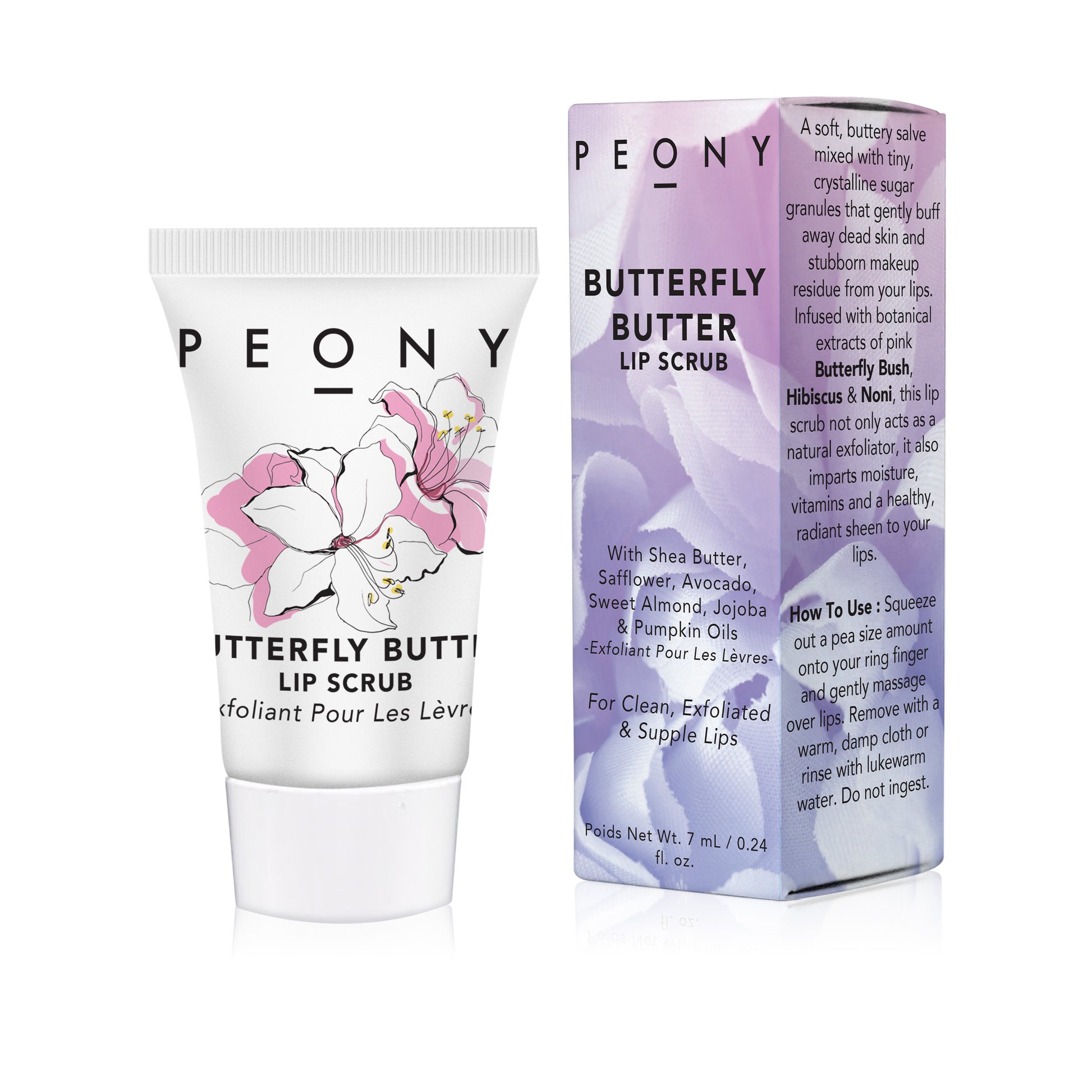 A soft, buttery salve mixed with tiny, crystalline sugar granules that gently buff away dead skin and stubborn makeup residue from your lips. Infused with botanical extracts of pink Butterfly Bush, Hibiscus & Noni, this lip scrub not only acts as a natural exfoliator, it also imparts moisture, vitamins and a healthy, radiant sheen to your lips.