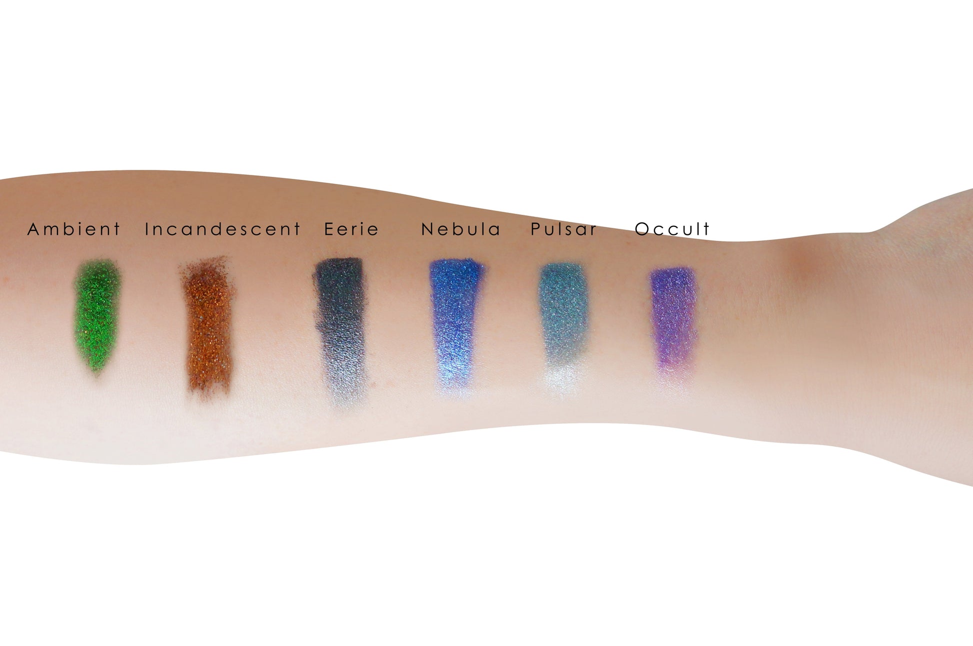 Revel in the eternal colors of this pigmented, star-powered powder. Light from afar is encapsulated within this compact jar to deliver a stunning flickering lightshow for your face, hair and body.