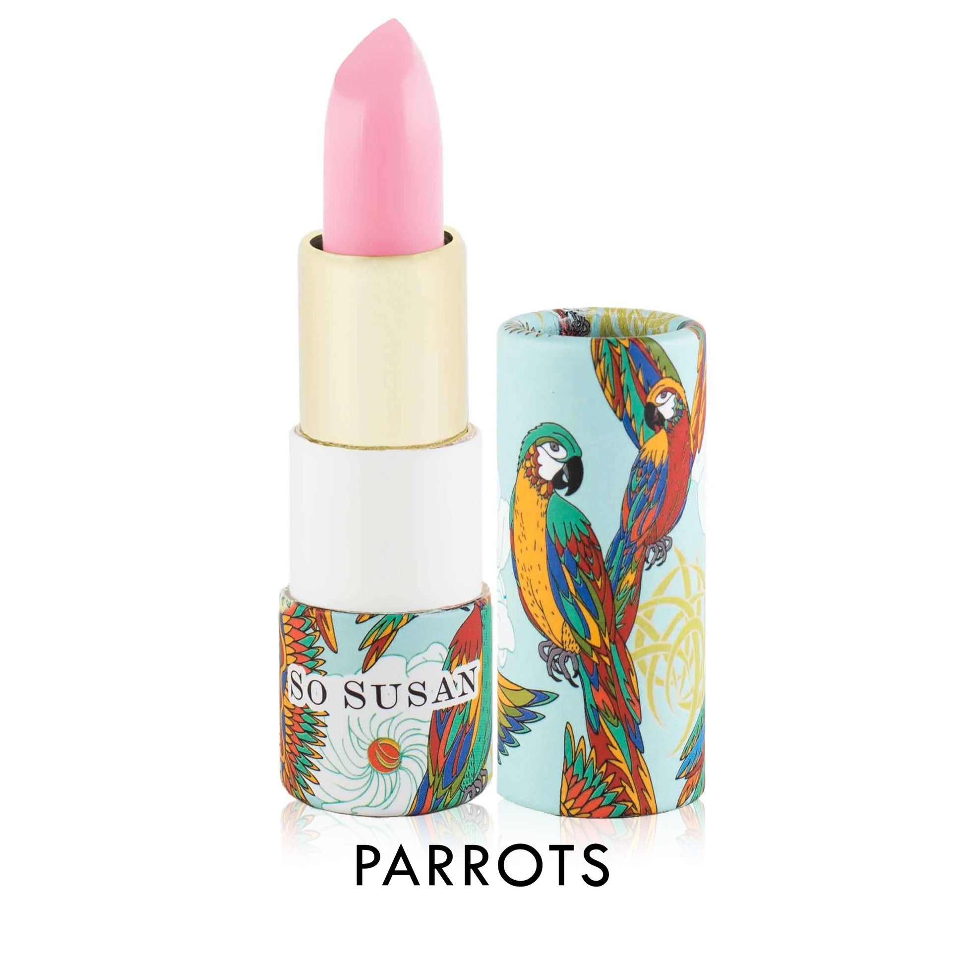 Parrots : A divine lipstick and gloss hybrid formulation in an innocent baby pink shade. The scrumptious formula paired with our lush, eco-sustainable packaging glides effortlessly onto your lips, leaving it beautifully hydrated in a soft, subtle color.
