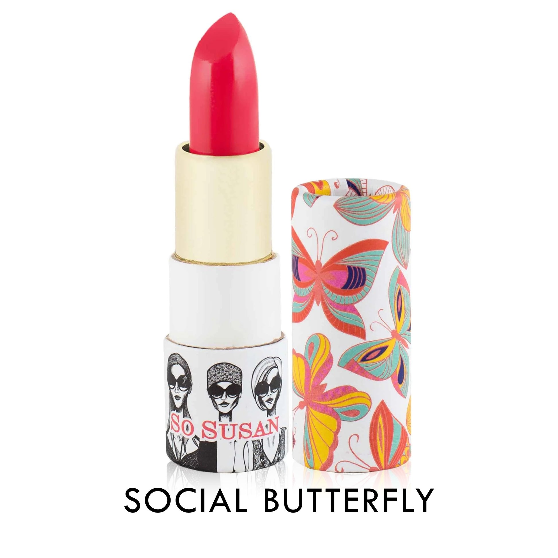 Social Butterfly : The best deep, cool red that will guarantee you a smokin’ hot pout. This sumptuous, divine red is a scrumptious cross between a lipstick and a gloss, and the packaging is so pretty–you’ll want to keep taking it out to reapply.